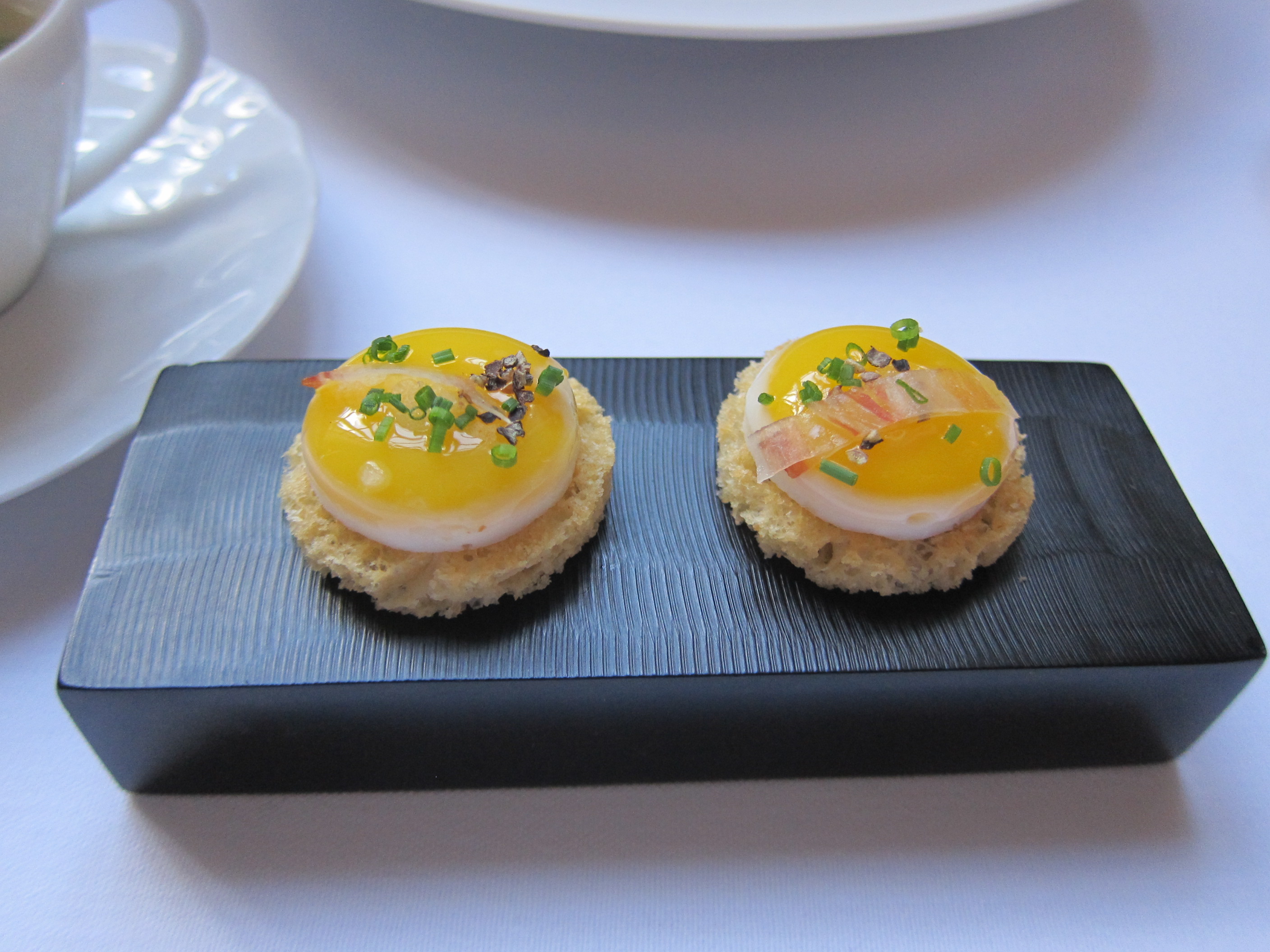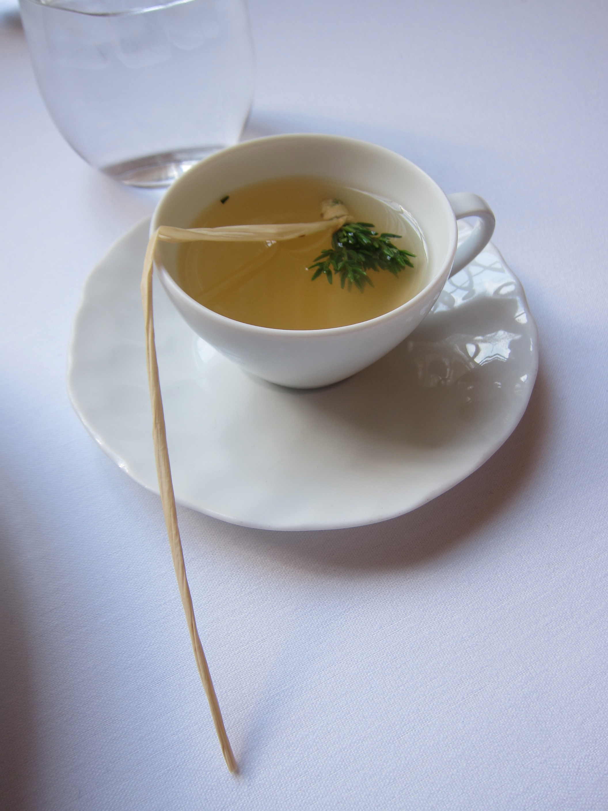 sunny side up quail egg brioche and smoked apple tea with thyme, in addition to wonderful presentation, both of these were very delicious and the tea was very aromatic.