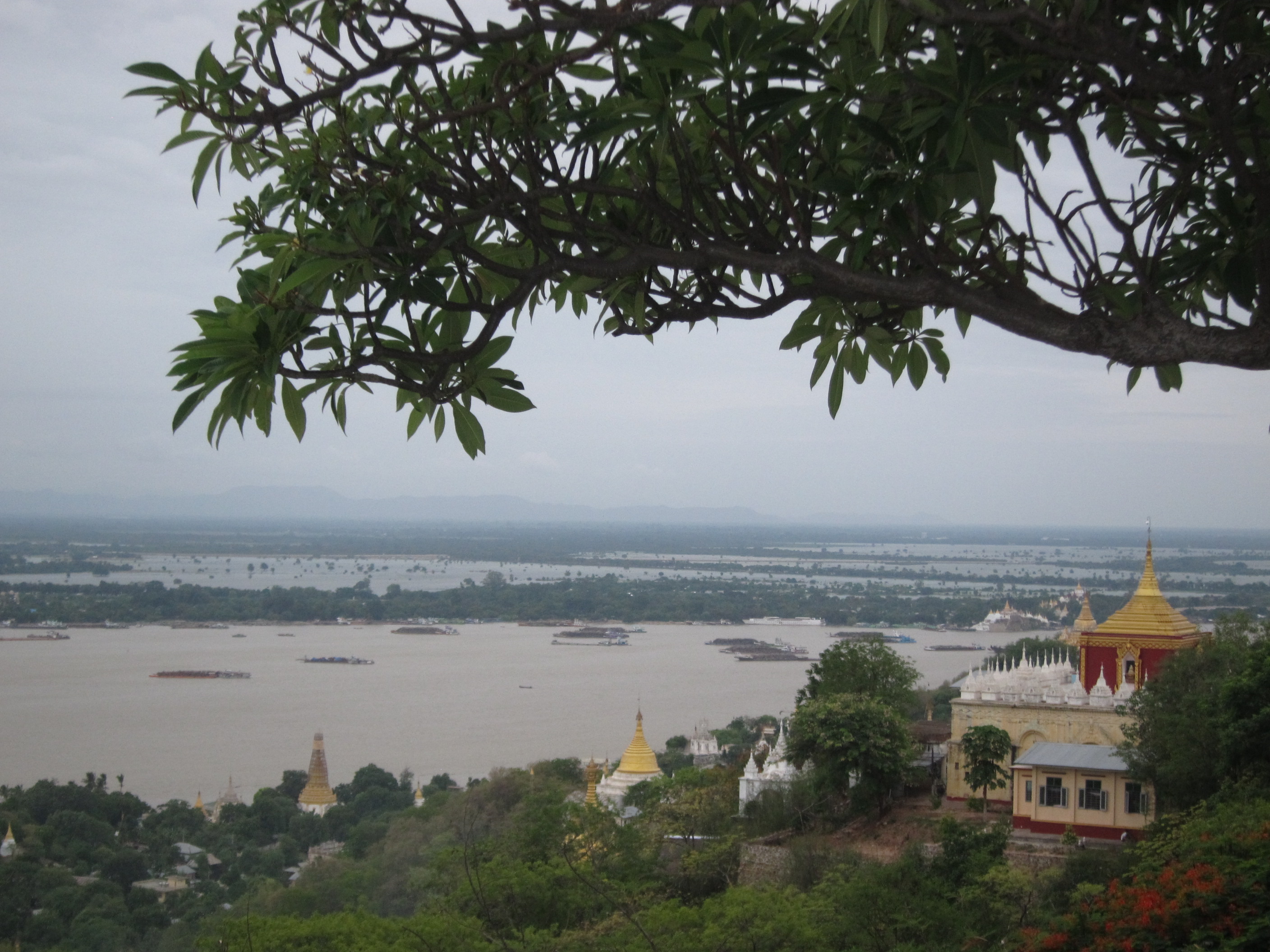The day started off with a bowl of Nangyi Thoke that we asked the chef to prepare for us. My Burmese friend told me I could not leave Mandalay without trying this Mandalay specialty that locals usually eat for breakfast. Afterwards we went to the village by the dock to see The Road to Mandalay staff offer breakfast to local monks. Then we headed to Sagaing, which was across the Ayeyarwady (pronounced: Irrawaddy) River. We headed up to Sagaing hill for an amazing view of Mandalay, Sagaing and the river. This was the first site that made me feel the magic and mystery of Burma. From here we saw the two Ava Bridges (one original from British times and one recently built), our boat, and Sagaing’s multiple pagodas and temples and well as the International Buddhist University. Afterwards we visited a nunnery, and saw nuns preparing their lunch, nuns received uncooked food from donors and cook themselves while monks received cook meals because it is assumed men cant cook.