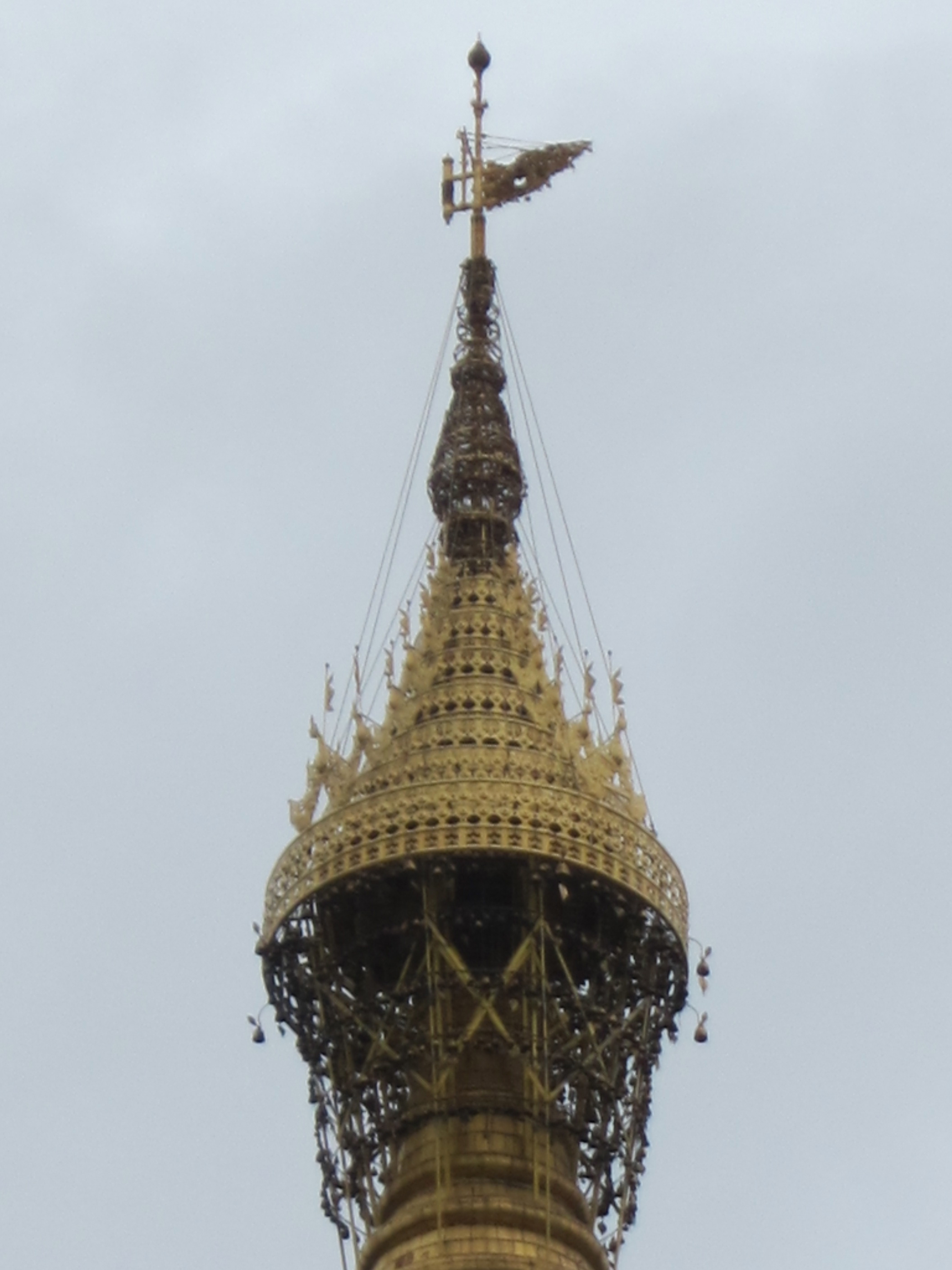 Dhammayazika Temple (the falling piece of gold leaf are remnants of the former government, a former official decorated it with gold leaf as it was one of his favorite temples but it has since all fallen off and not been maintained.