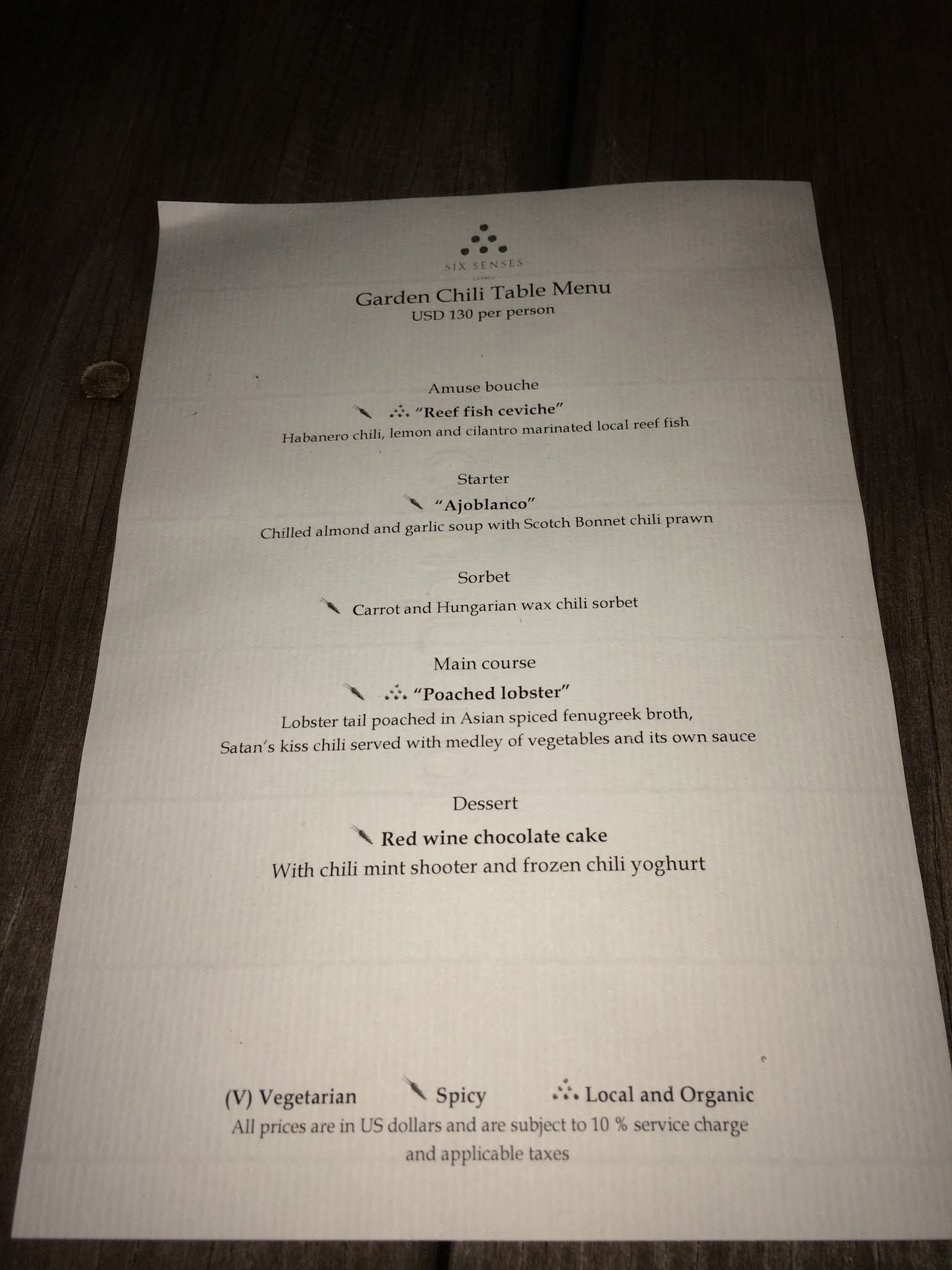 The resort’s other foods were quite good. At first we were not impressed with the food but on our second meal onwards the food were all consistent and tasty. We opted to book the Full Board dine around option which means, included in our rate, we were able to eat any restaurant in the hotel as well as book any special dining experiences within the island, drinks however were not included. This turned out to be great because we looked at the pricetag for an average three course dinner and it was $98++ per person! Furthermore we did do some special dining experiences all of which were $100+++ per person. The best lunch is at Leaf which serves Vietnamese food for lunch. We did three special dining experiences, two included in our rate. We did the sunken sand table dinner on the beach which was very unique and a must do experience in the Maldives, though our’s was cut short due to a tropical storm, it was during this meal that I had the best dish at Laamu, the cod. We also did dinner at the candle lit outdoor wooden Chili Table in the garden which featured a 5 course meal, each containing various local spices grown in the resort’s organic garden, it made for a flavorful, zesty and spicy meal but it was one of the best meals we had. Our third special dining experience was a private sandbank BBQ on the resort’s private sandbank, this was a special experience dining under the stars all by ourselves. One of the best food features is the Ice Cream bar featuring 40 flavors of homemade ice cream and sorbets, and complimentary for all guests! The breakfast is decent, the best part being the crepe station and the wide selection of fresh squeezed juices and smoothies, the Laamu Villas also come with a Nespresso machine which I thought was pretty nifty and the coffee tasted great in the morning. Six Senses Laamu also has a very good wine selection and a very cool wine cellar called Altitude, we enjoyed a very tasty bottle of white wine and champagne (on NYE) during our stay. The New Year’s Eve sandbank sunset cocktail party was lots of fun, I learned some Maldivian dance moves from a traditional fisherman’s dance, which locals do to bid good luck and a good catch to departing fisherman, from the local dancers who were performing and the resort created a surreal setup on the sandbank, the NYE buffet was fairly good but it was the setup that was impressive, lining the entirety of the overwater structure; and the countdown was anti-climatic (no fireworks, a bad DJ and Auld Lang Syne was never played, I just think this is such a classic NYE song!), but hey, dancing on the beach under the stars with a fine glass of champagne still made it a memorable and fun New Year’s Eve. (NOTE: I had since gotten a response from the GM to my tripadvisor review with a great explanation for lack of fireworks and Auld Lang Syne, and it is because 1) Environmental protection and sustainability that they do not want to put on fireworks, 2) they are focused on preserving and respecting local culture and thus did not play more global NYE songs, nonetheless this doesnt change the fact that the DJ was not good). During our excursion we also had a picnic on an uninhabited island, which was a very nice experience and the picnic food was fresh and good.
