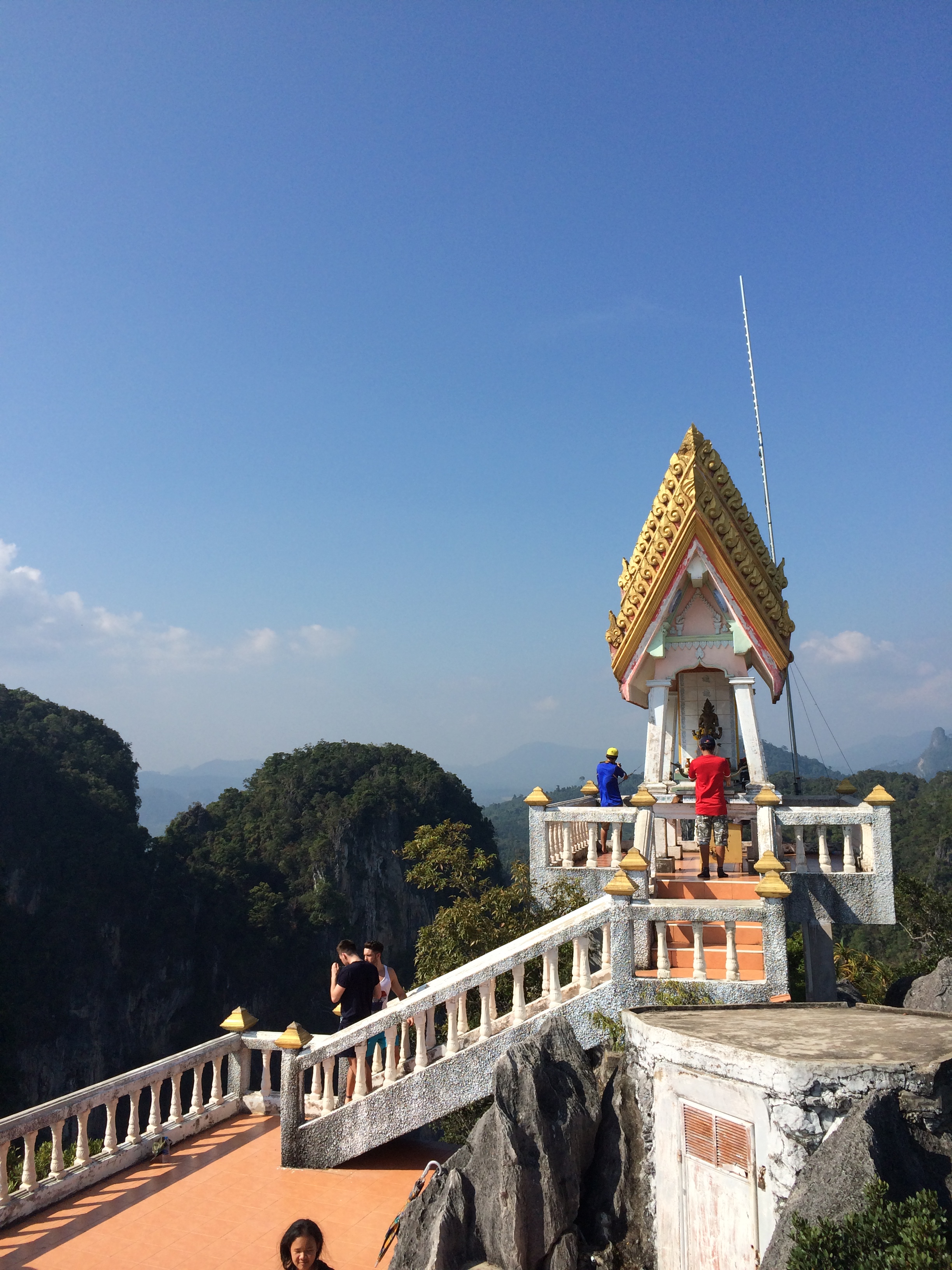 They recommended that we start early to beat the crowds at the Hot Spring and Pools. This was a great idea, and we arrived at the hot spring right as it opened. The hot spring flows down a few small natural pools and into a river below. Our guide/ driver recommended going into the hot pools for 20 min. before walking down and jumping into the cold river to cool off and get maximum circulation. This is exactly what I did. Overall it was a very relaxing experience to get a hot spring bath out in nature with very few others around. I enjoyed laying on the lower rocks of the with the hot spring waterfall flowing behind and my legs knee deep in the cool waters of the river, looking up at the trees and soaking in the small rays of the early morning sun. As we left, the crowds starting coming in. However, when we arrived at the Emerald pool, the crowds were already there. The pool itself is like the local swimming pool, with more locals than foreigners, which I was quite fond of. The color was nice and we jumped in for a quick swim but it was just too crowded so we got out and walked along the paved walkway towards the Blue Pool (the source of the Emerald Pool and another nearby hot spring). The Blue Pool was really pretty, and had a bright sapphire shine, unfortunately there was no swimming in this smaller pool due to “deep waters and sucking mud,” which we interpreted as quicksand. Afterwards we walked back along the 800 meter forested pathway and hopped on the car and headed for a local restaurant for lunch. Our favorite meals on the entire trip were two meals we had at local restaurants, one on the excursion and one for a seafood dinner as recommended by our butler (Krabi has great seafood!). After lunch we drove to the Tiger Cave Temple. The main temple is located right at the foot of the mountain (or rock formation), with an inner temple dedicated to Guanyin, the Goddess of the Seas. But the main attraction is the 1,237 steep steps to the top of the mountain where the main Buddha is as well as exceptional views of Krabi and the surrounding Mountains. I noticed that there were more Thai people visiting and hiking than there were foreigners, which to me reiterated what I had read about the significance of this temple for Thai people. After many breaks throughout the steps, we finally made it to the top, and I must say that it was very much worth it, more so that a similar hike we did up monkey excrement filled steps in Burma to a very confusing temple. We then returned to our villas and enjoyed a bath in our two tubs after a long day of exploring the natural wonders of Krabi.